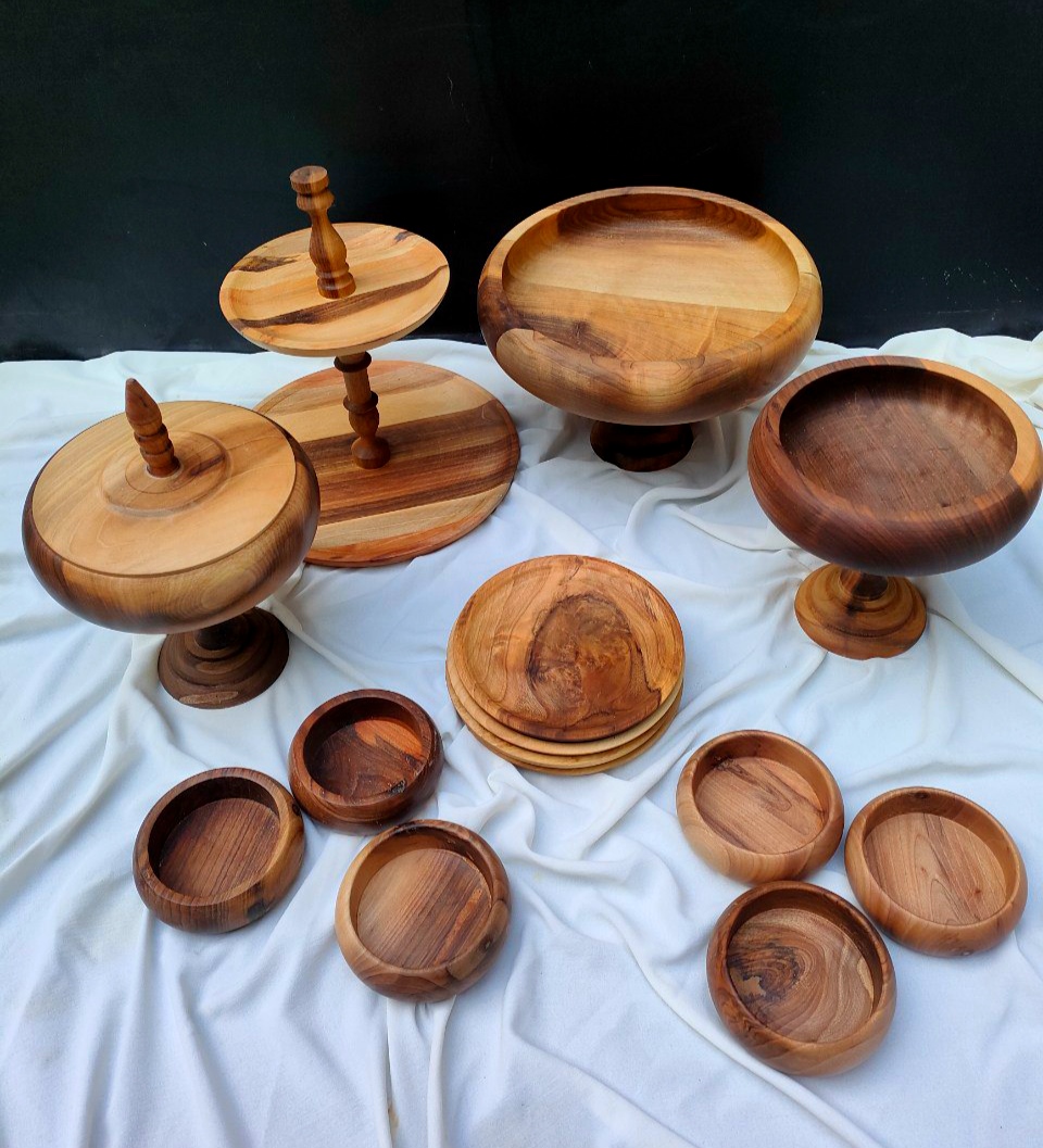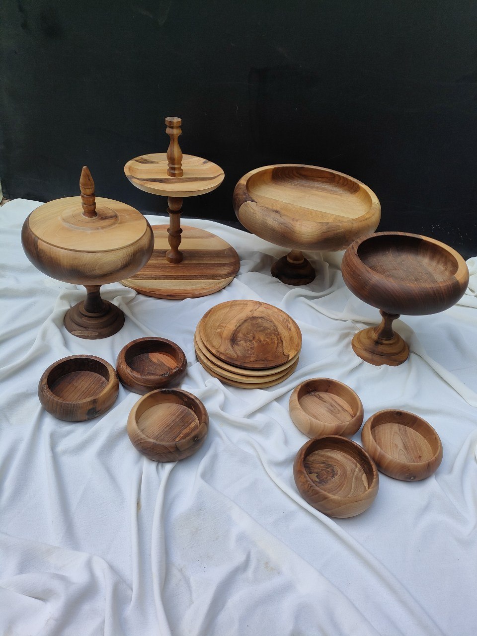 با ست پذیرایی کامل چوب گردو شامل 👈🏼 ( میوه خوری ، آجیل خوری ،شکلات خوری ، استند ۲ طبقه ، ۶ عدد کاسه ، ۶ عدد پیش دستی ) جلوهای بینظیر به میز پذیرایی خود ببخشید! این ست با طراحی شیک و کیفیت بیهمتا، مهمانانتان را شگفتزده میکند. ساخته شده از چوب گردوی اصیل، مناسب برای هر دکوراسیون. این فرصت را از دست ندهید و همین حالا خرید کنید