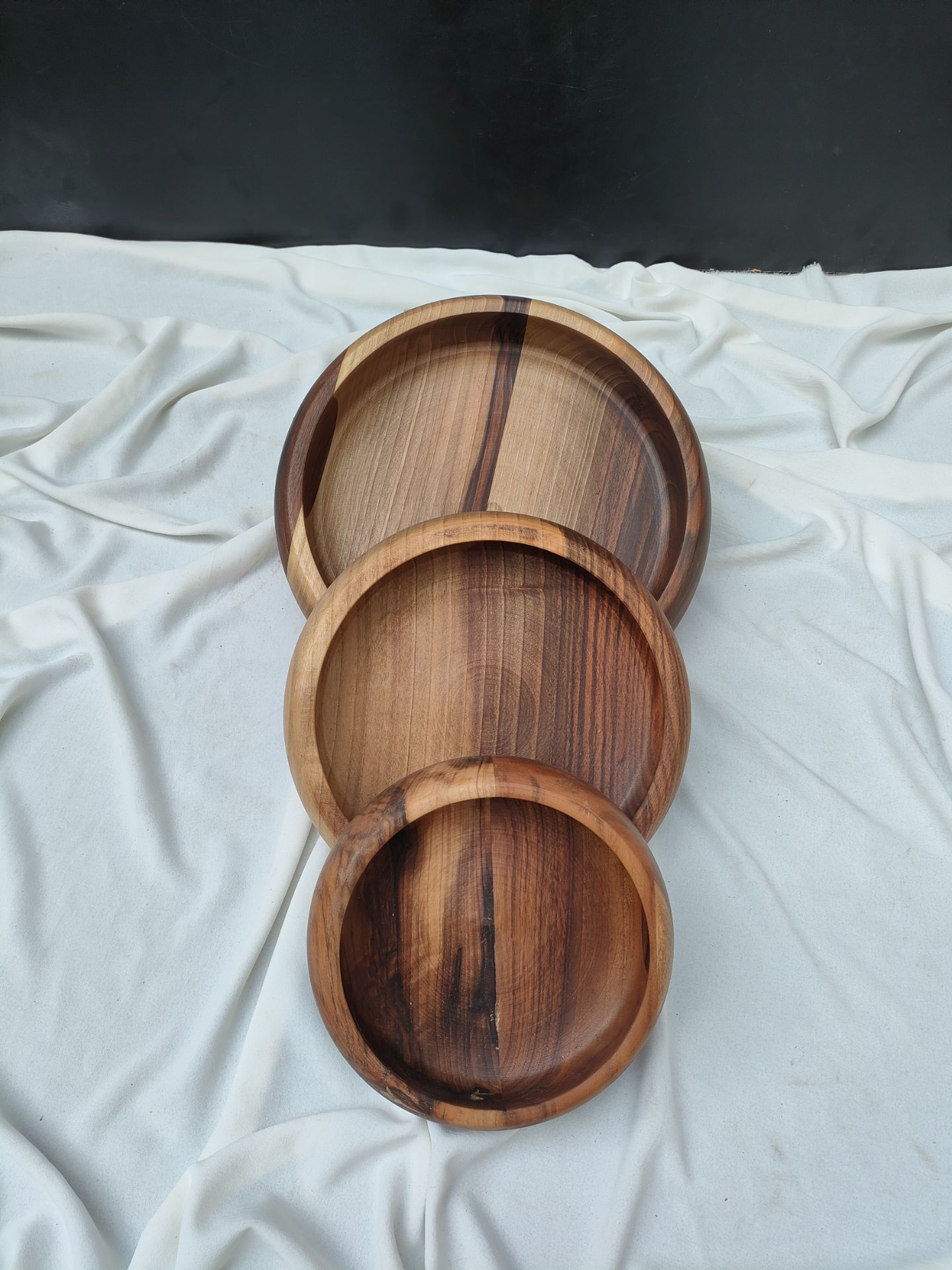 ۳ عدد کاسه چوبی به قطرهای حدودی 20 و 25 و 30 سانت چوب درجه یک گردو ، چوب گردو طیف رنگی گسترده ای دارد و این موضوع سبب جذابیت بیشتر چوب گردو شده رنگ های تیره و روشن...